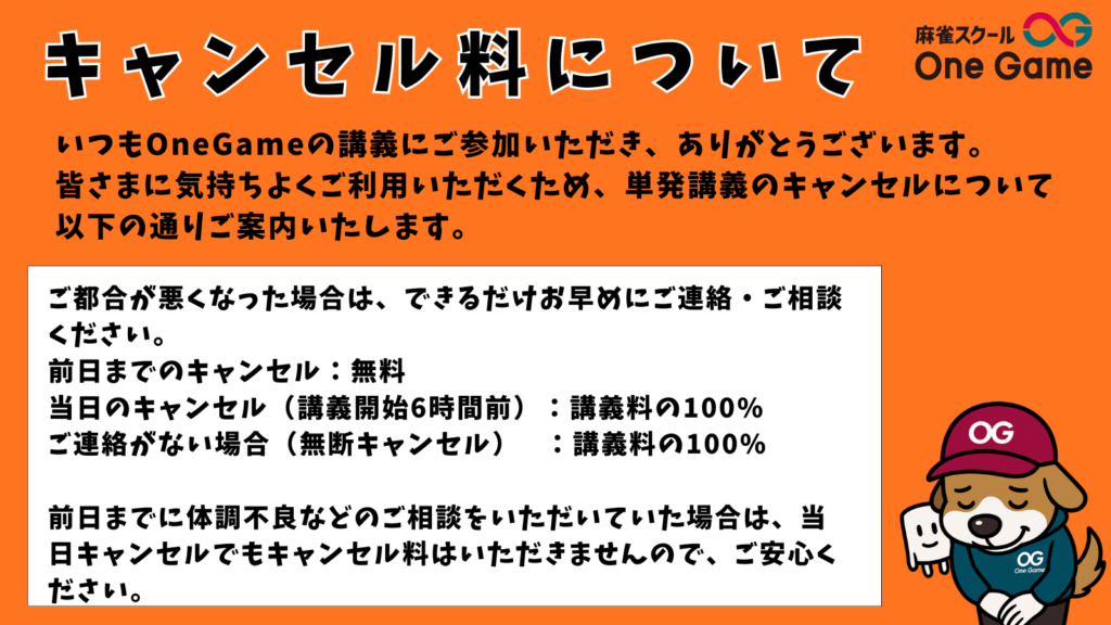 いつも麻雀スクール OneGame の講義にご参加いただき、誠にありがとうございます。