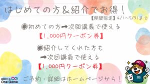 クーポンはOneGameのお好きな講義でご利用いただけます。