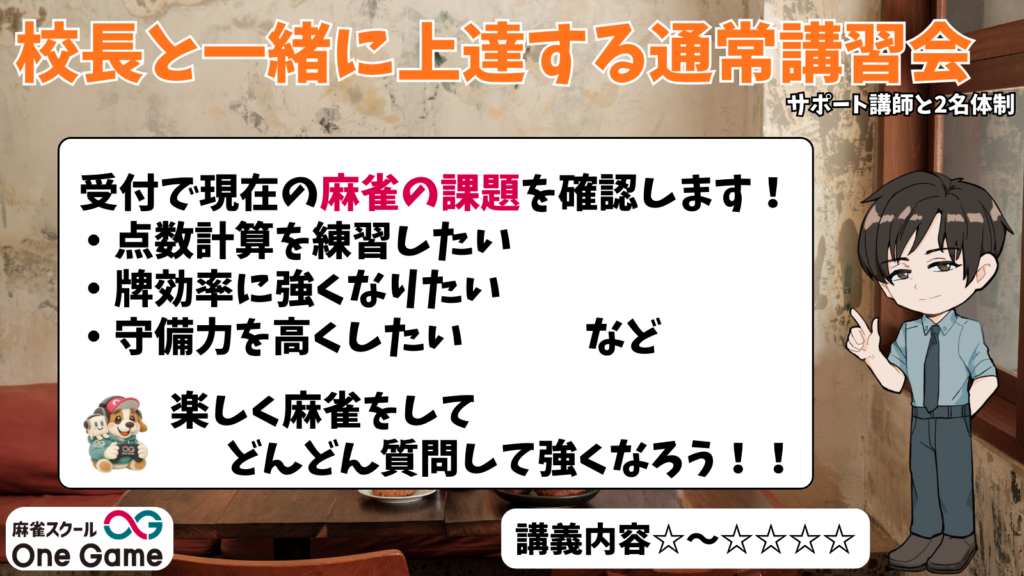 たくさん麻雀をして、自然にレベルアップしましょう!